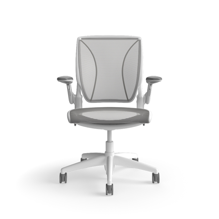 Task chair diffrient world, humanscale, adjustable height, duron arms, graphite upholstery, white