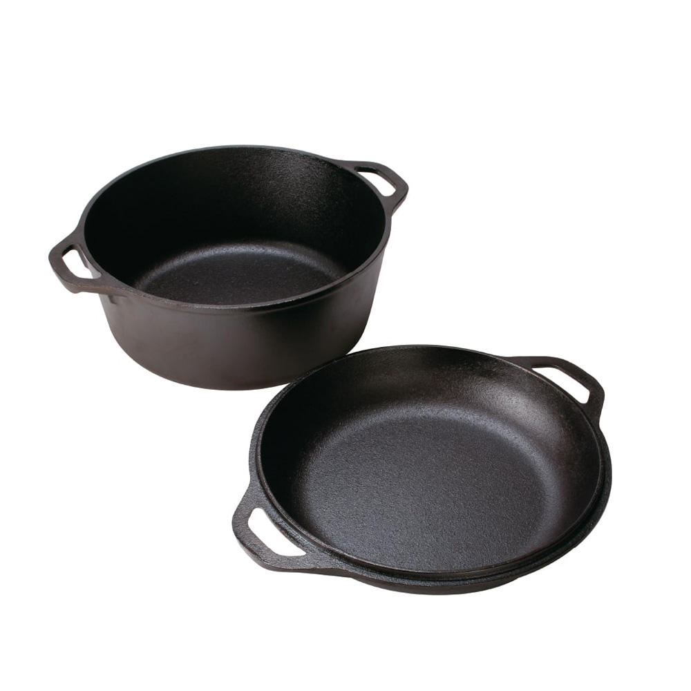 Lodge 5 quart cast dutch oven, iron, red, 4.7 liters